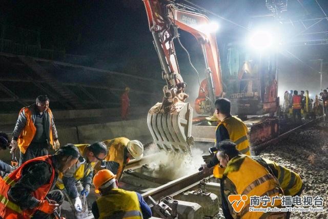 贵南高铁引入南宁枢纽工程是贵南高铁建设的重要组成部分,2022年11月起,先后进行了更换宽轨枕、插铺道岔及信号、接触网调试等站改施工,对进一步提升南宁地区运输组织能力,扩大壮乡首府南宁及广西动车开行规模,满足人民群众出行需求具有重要意义。
