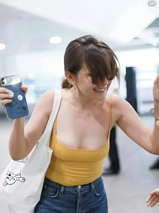 热依扎身着紧身牛仔裤黄色吊带,呼之欲出,网友直呼性感!