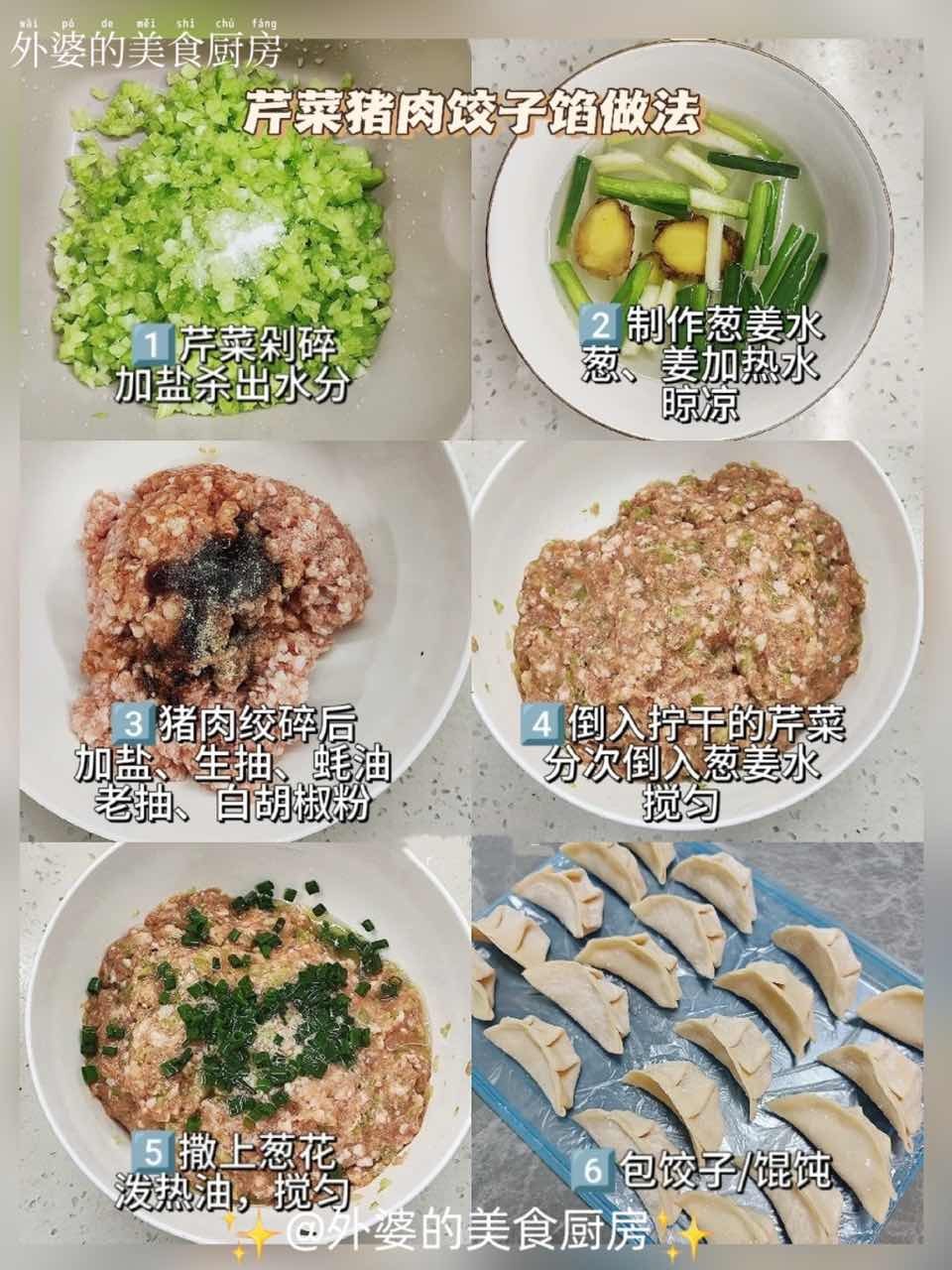 2. 芹菜猪肉食材:芹菜、葱、姜、猪肉、盐、生抽、蚝油、老抽、白胡椒粉