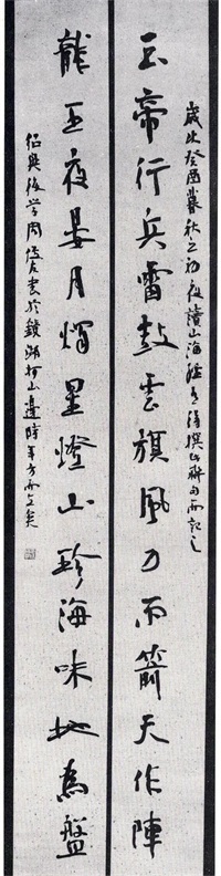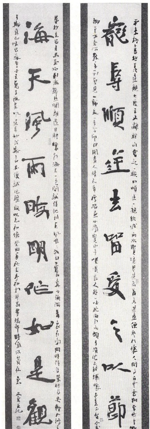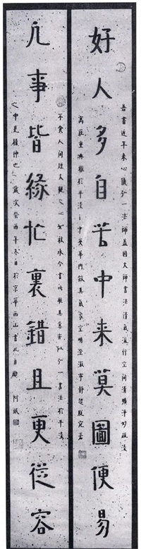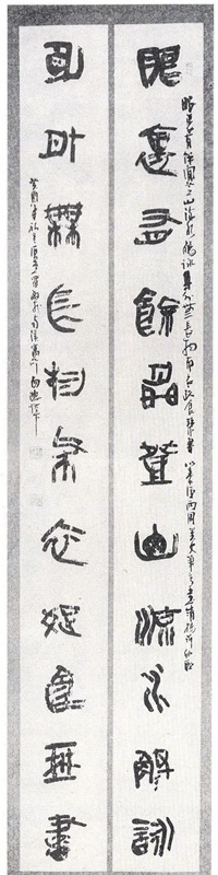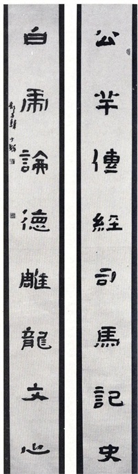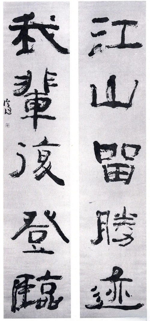 楹联是书法艺术中重要的一种艺术形式,他通常是作为一种装饰的艺术形式或者结合内容启迪人们的智慧。一般这些楹联书法作品都是悬挂在庙宇、殿堂、门盈等亭台楼阁上面。书体一般会用到楷行或者篆隶,看建筑情况进行搭配。