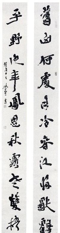 楹联书法作品也是书法艺术形式的一部分,楹联又称对子,但对子不能称为楹联。楹联就是通过把对子用书法表现出来的艺术形式。