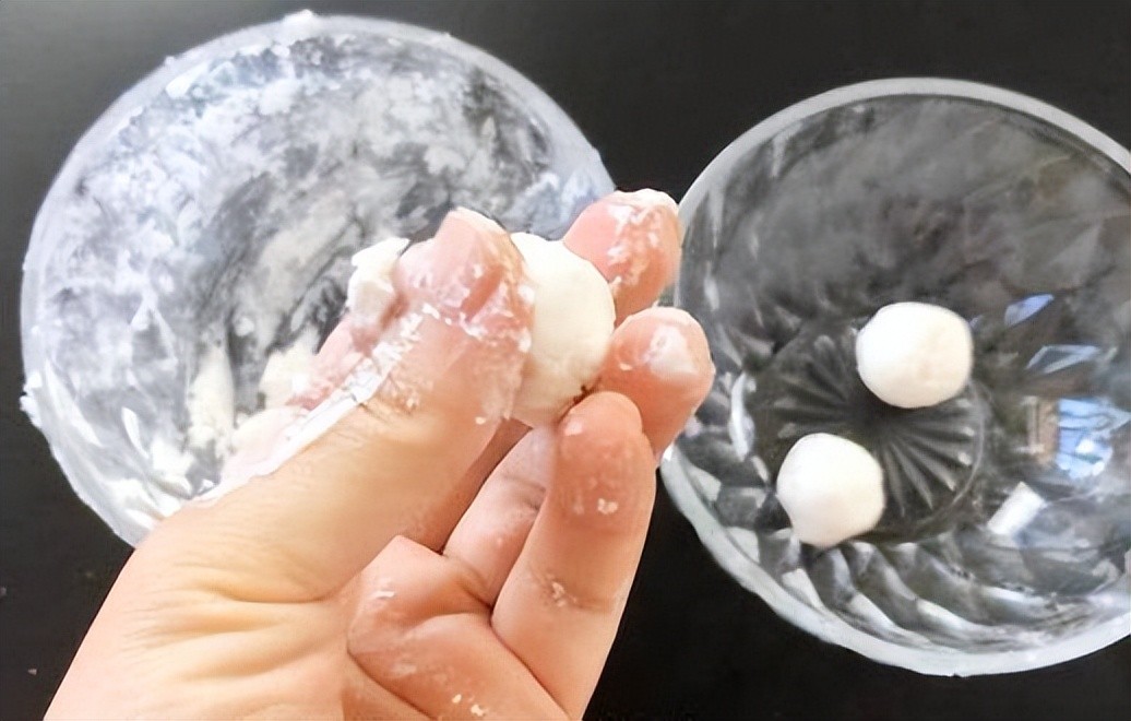 用筷子将溶液搅拌成糊状,然后揉成球状,放入冰箱。下次洗涤时,只需将这款药片用清水冲洗干净,不仅可以洗衣服,还可以去除汗味。洗涤后的衣服干净,光滑的白色。