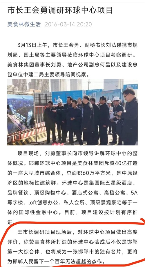 2016年在建设过程中迎来了当时sz视察,在听完刘勇董事长介绍后更是称赞将为邯郸人民留下一个百年无法超越的杰作,目前来看三四线城市这样的商业综合体寥寥无几,说是百年难以超越确实合情合理