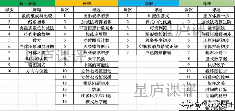 从上图可以看出,学而思培优的课程按季度分成了暑、秋、寒、春4种课程。