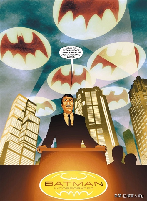 布鲁斯.韦恩终于回到了自己的时代,他并没有要求迪克格雷森将蝙蝠侠的身份归还自己,而是以布鲁斯韦恩和韦恩集团的身份召开了新闻发布会,宣布由韦恩集团资助成立蝙蝠侠公司,在全世界范围内邀请超级英雄加入。