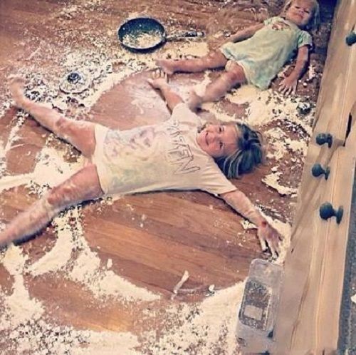 妈妈去超市买了面粉回来后就倒到家里的米罐里,就去洗衣服了,平时自己洗衣服孩子总是来问东问西的,但是这次妈妈洗了半个多小时的衣服也没看两姐妹来,而且好像也没有打架的声音,妈妈出来一看,自己买来的面粉,成了姐妹的地垫。