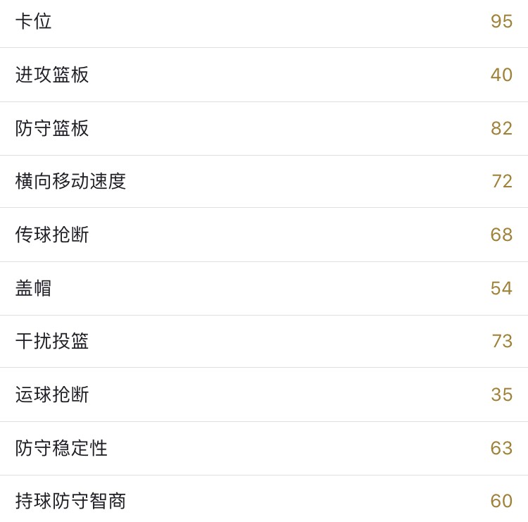 曾经的盖伊空位中投接近120,三分也有100左右,投篮包也是非常优秀,配上中距离徽章和底线三分徽章在锋线位置上担任定点投手一点问题没有,在准度上甚至不输给一些千万级别的球员,有着“平民杜兰特”的美誉。