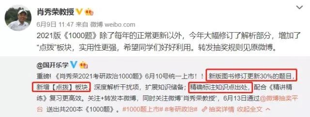 在政治参考资料中,肖老爷子的1000题几乎是人手一本的。小希也已经拿到了这本政治必备书,还没买的同学,小希也给大家准备了高清的电子版练习(具体请看文末)。