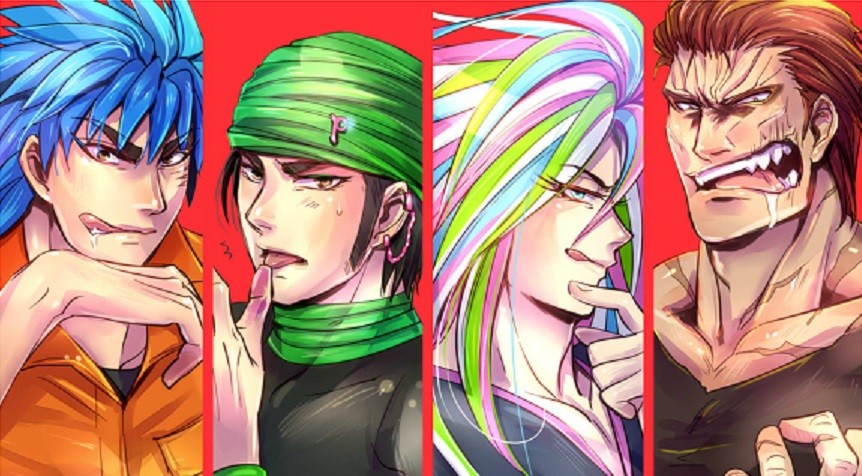 美食四天王包括阿虏,可可,萨尼,泽布拉。阿虏是本作主角,超级大胃王兼大酒豪。可可则被其他四天王称之为四天王最体贴的男人。萨尼被其他四天王称之为四天王中最偏食的人。泽布拉被阿虏称之为四天王的问题儿童,破坏能力在四天王中首屈一指的家伙 。
