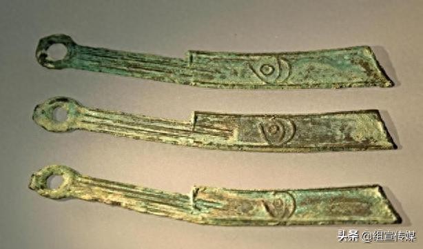 刀币。形状如刀,鬼脸钱,又称蚁鼻钱,钱上文字象人面。