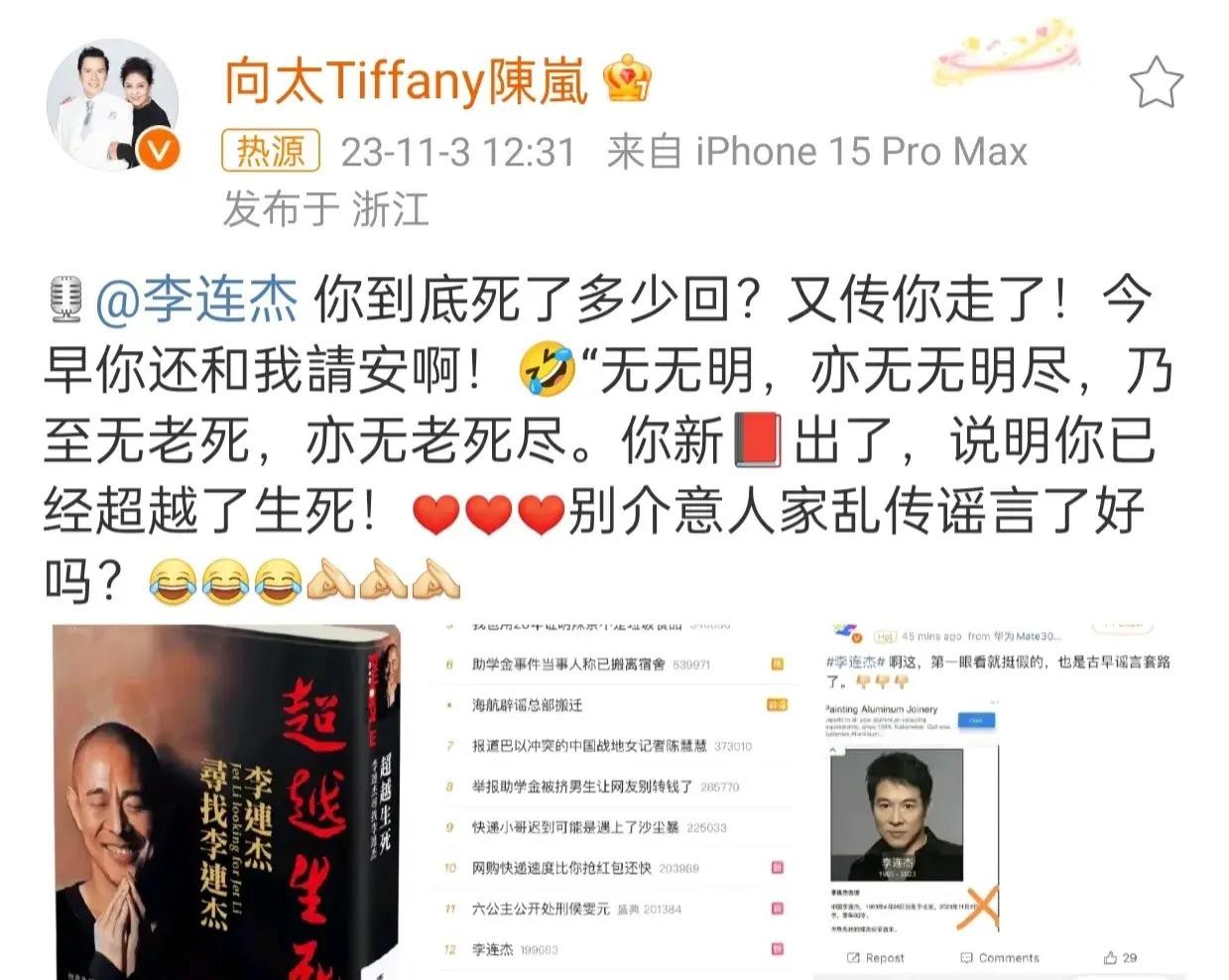 李连杰真的去世了?向太发文辟谣惊爆真相!