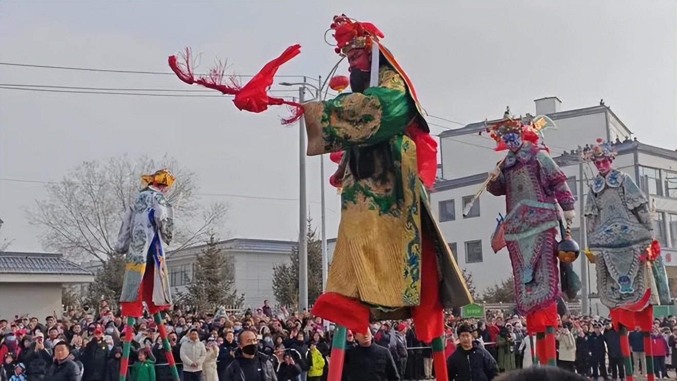 踩高跷:踩高跷是民间盛行的一种群众性技艺表演。高跷艺人装扮戏曲人物且歌且舞极具观赏性。