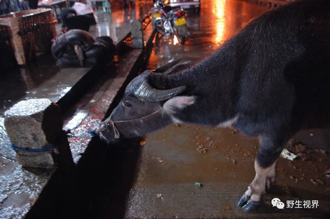 在这些成语中,给我记忆极其深刻的一个就是“庖丁解牛”。2006年,我在福建永宁的两个村子拍摄过屠宰水牛的血腥现场(不上图了)。每天天亮之前那里都会屠宰一头水牛,供应周边村子牛肉。屠夫们半小时就可以将一头水牛屠宰分解分类,很快就出售完毕。上图即将被屠宰的水牛,图左上角是分解完毕最后剩下的打包牛皮。