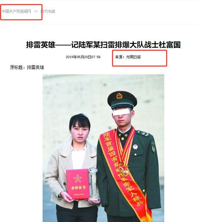 中国共产党新闻网《排雷英雄--记陆军某扫雷排爆大队战士杜富国》