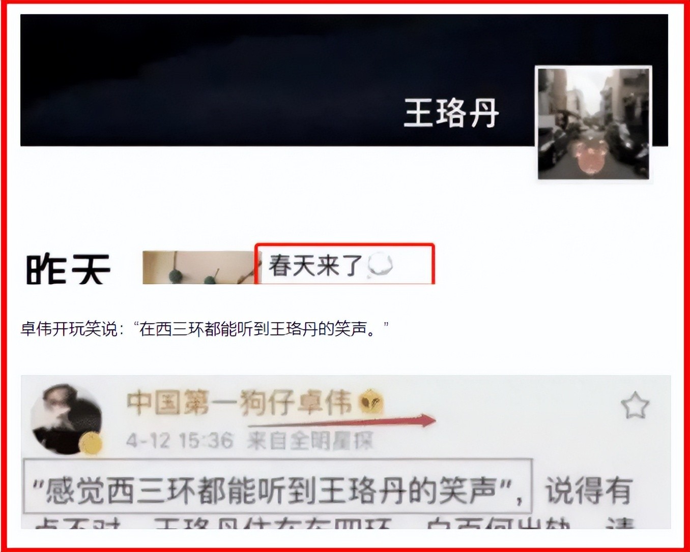 可就这个时候,卓伟单独为王珞丹发了一条动态!