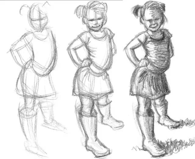 画草图时,力求捕捉所有这一切特征,同时迅速地勾画更多的细节。