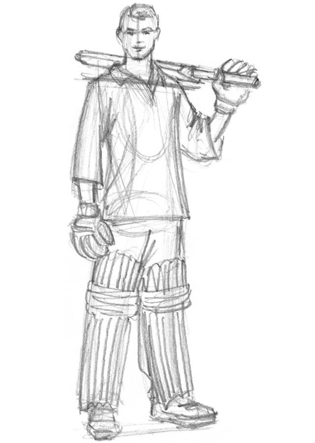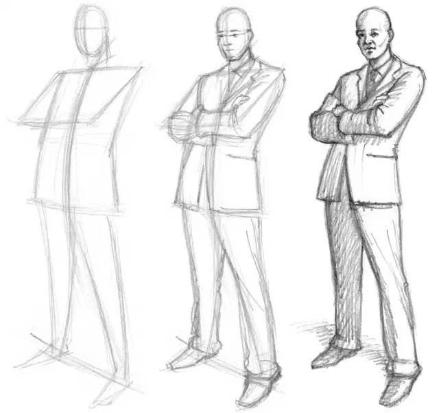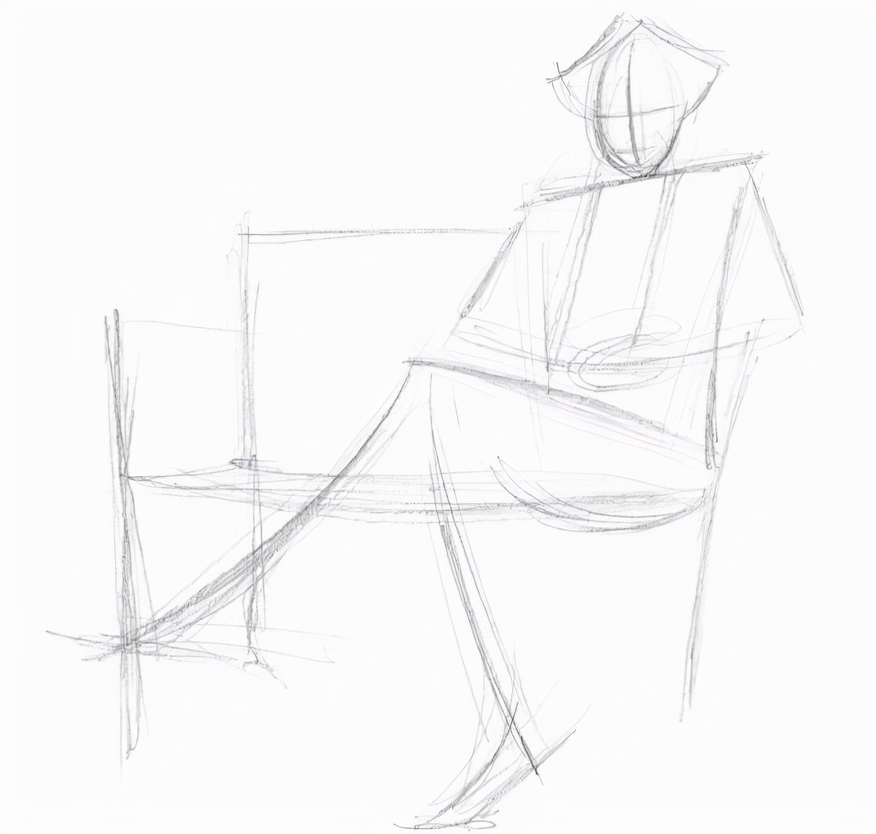 2、画出头部的形状、肩膀的轮廓、身体的角度和肩部以下的胳膊。