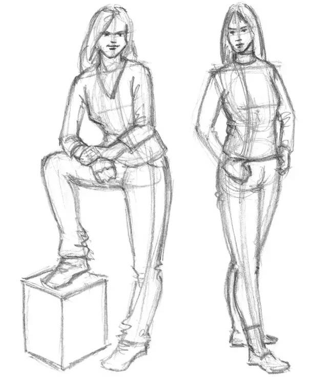 3、画腿部简单的线条,体形要处理得恰当均衡,身体比例要合适。