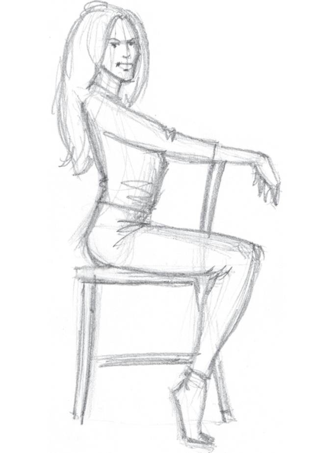 如果是全身坐在椅子里,椅子对人物的姿势会产生极大的影响。