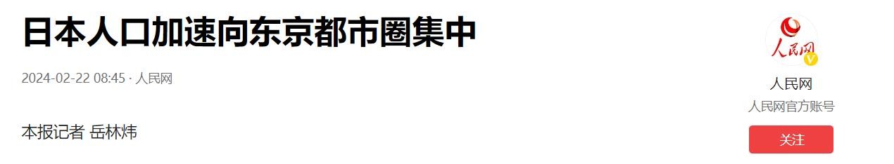 《日本人口加速向东京都市圈集中》——人民网 2024-02-22