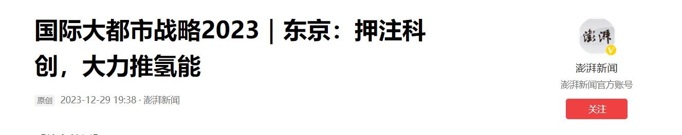 《国际大都市战略2023|东京:押注科创,大力推氢能——澎湃新闻 2023-12-29