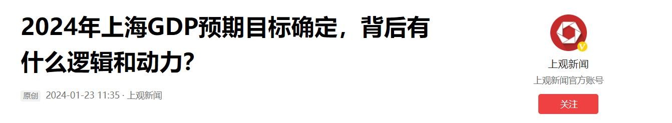 《2024年上海GDP预期目标确定,背后有什么逻辑和动力?》——上观新闻 2024-01-23