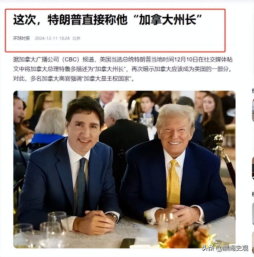 暗示加拿大应该成为美国的一部分,就连CBC等媒体指出,特朗普在海湖庄园会见特鲁多时,就曾告诉对方加拿大应该成为美国的51个州。