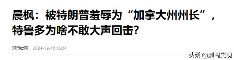 观察者网2024-12-18《晨枫:被特朗普羞辱为“加拿大州州长”,特鲁多为啥不敢大声回击?》