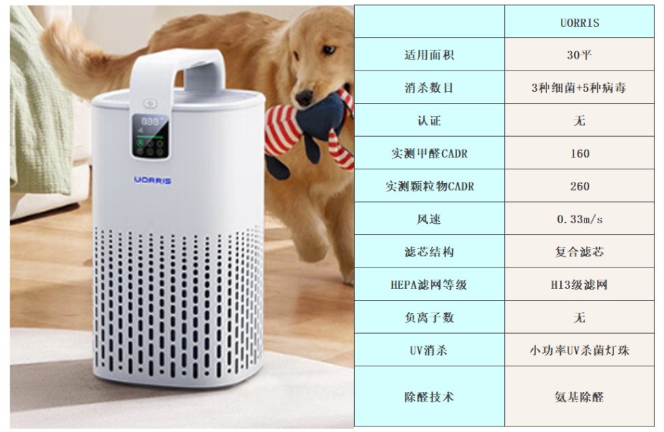 它实测净化率还可以,但建议产品采用更高等级的滤网,获得更好的净化效果。