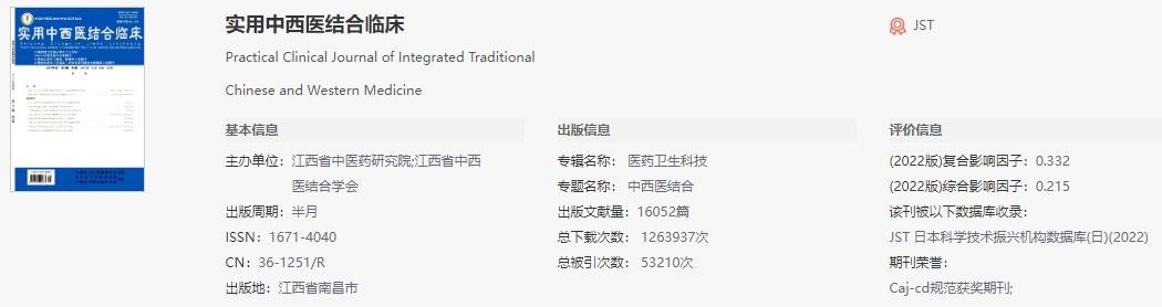 主办单位:江西省中医药研究院;江西省中西医结合学会
