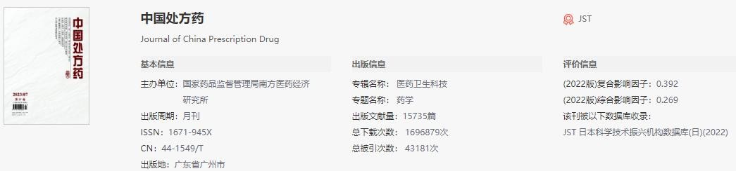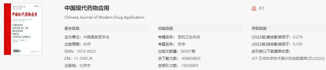 ·中国现代药物应用-国家级-收稿全科(需与药物相关)