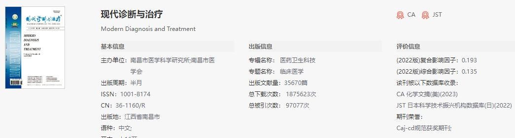 ·现代诊断与治疗-省级-收稿临床、护理类,不收综述