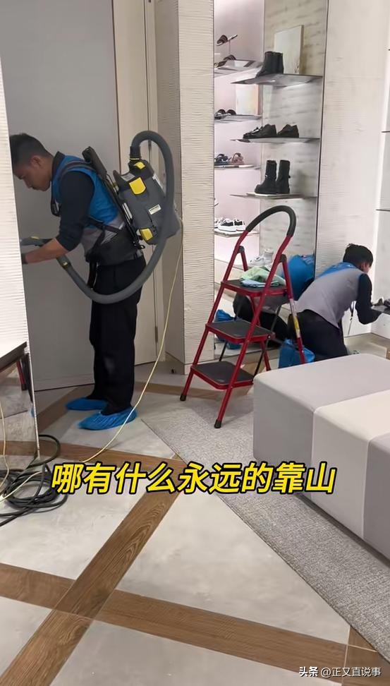 7:00到商场后,她换好上班的制服,此时商场清洁工已经开始细致的打扫,他们很多是来自东南亚或者印度的劳工,每个月的收入换算成人民币大概1900人民币,是这个城市真正的底层。