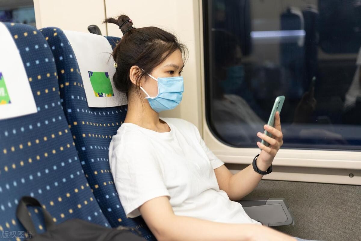 女孩戴口罩乘坐高铁