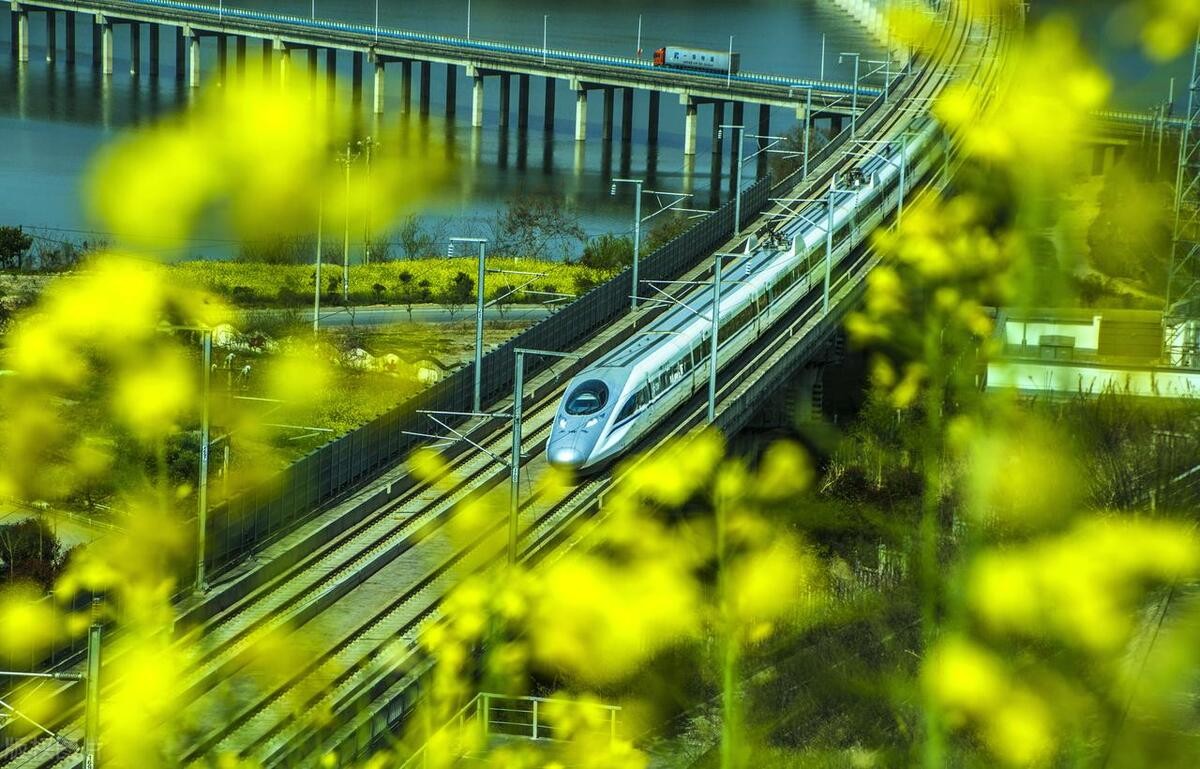 美好的春天,高铁行驶在祖国大地上