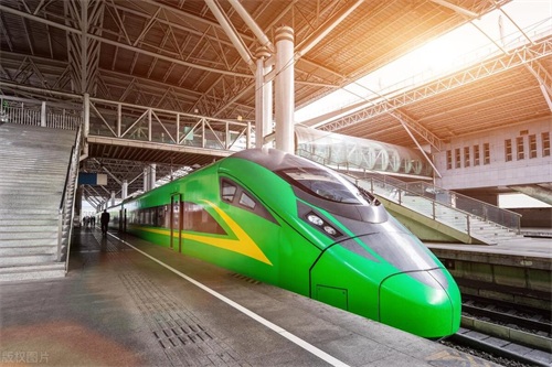 在南京站站台上的复兴号高铁列车绿巨人