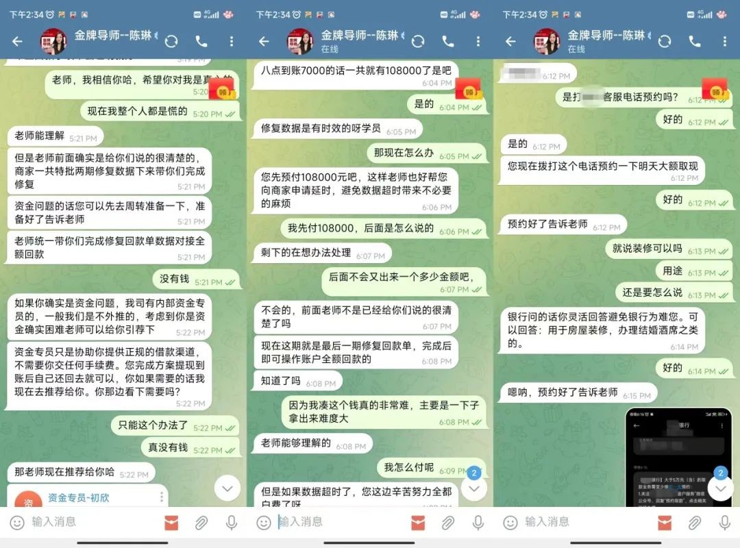 此时,“导师”以“操作失误导致数据损坏”为由,要求刘女士在24小时内充值10万元“修复数据”,否则所有资金将“永久冻结”。为增加可信度,对方还发来伪造的“系统故障截图”和“成功案例”。信以为真的刘女士在“客服”诱导下,通过网贷平台借款10万元,并按照指示将现金装入行李箱,预约网约车送往指定地点“验收”。