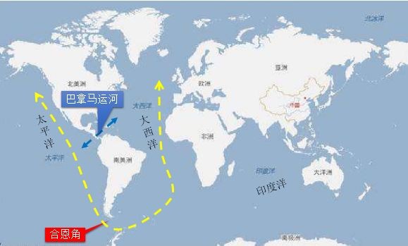 在巴拿马运河开通之前,大西洋和太平洋之间互通的最佳航道就是绕过南美洲曾被称为海上坟场之一的“合恩角”,而巴拿马运河刚好在南美洲和北美洲之间贯穿了大西洋和太平洋。所以选择巴拿马运河可缩短美国东西海岸航程约15000公里。由北美洲的一侧海岸至另一侧的南美洲港口也可节省航程多达6500公里。航行于欧洲与东亚或澳大利亚之间的船只经由该运河也可减少航程3700公里。