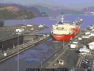 巴拿马运河整个运河的水位高出两大洋约26米,设有6座船闸。船舶通过运河一般需要9个小时,可以通航76000吨级的轮船。