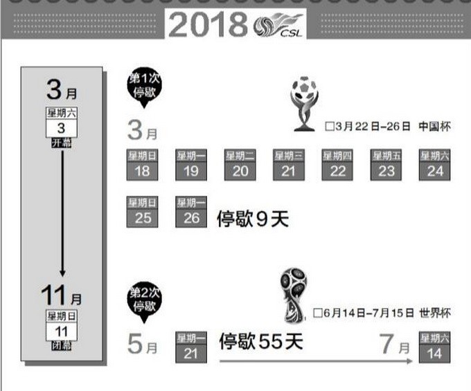 2018年中超联赛赛程公布 中超让路世界杯歇55天