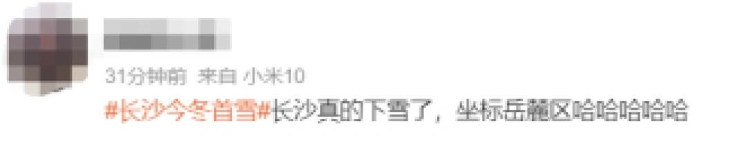 今日上午,坐标岳麓区的网友表示:“真的下雪了!”,还有网友表示:“在这个起床都需要勇气的天气,居然在长沙等来了一场雪”也是一份冬日惊喜了。