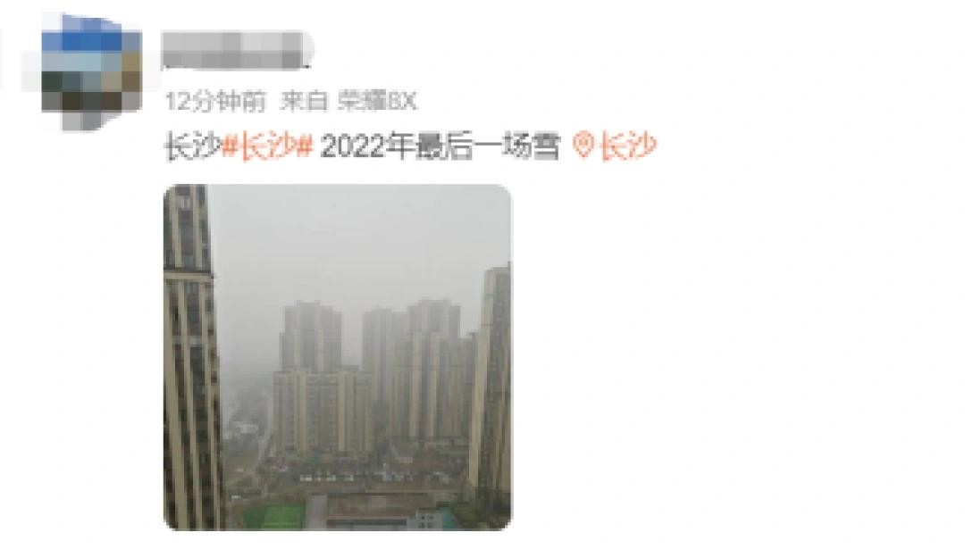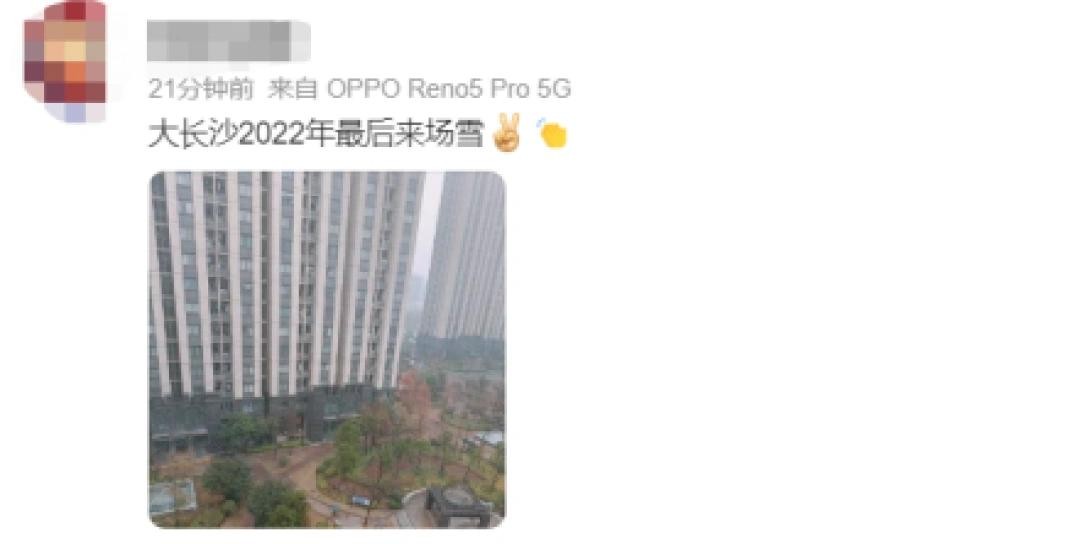 虽然目前降雪并不是很明显,但盼雪已久的长沙人还是十分激动。许多网友拍下飘落的雪花,纪念这个冬天在城区看到的第一场雪,也可能是2022年最后一场雪。