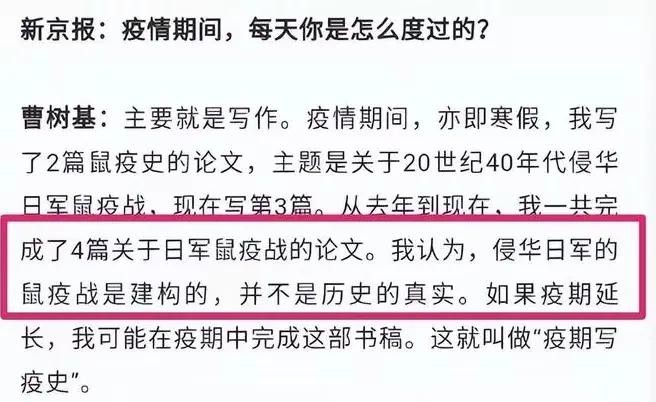 曹树基教授的观点主要基于他对一些历史记录的怀疑。他觉得日军如果真的进行了鼠疫细菌战,那么他们没办法控制鼠疫杆菌的传播,甚至可能会危害到日军自己。