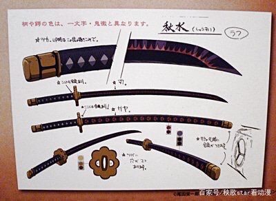 说明:此刀会擅自释放使用者的“流樱”(霸气),超出控制的“猛斩”,普通剑士使用会精力被释放光而干枯的危险。但索隆能很快适应。原为已故和之国大名光月御田的佩刀之一。御田生前立瞩将此刀传给爱女光月日和,由和之国锻刀匠天狗山飞彻代为保管20年,曾为光月御田双刀流宝刀之一,御田同持【天羽羽斩】与【阎魔】号称“砍至地狱的宝刀”;是给凯多留下唯一一处伤痕的武器。