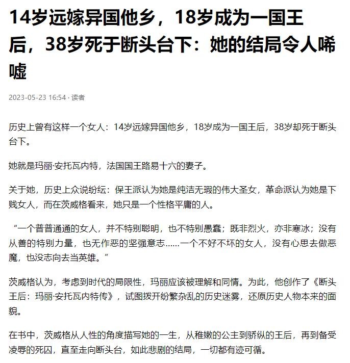 读者 14岁远嫁异国他乡,18岁成为一国王后,38岁死于断头台下:她的结局令人唏嘘