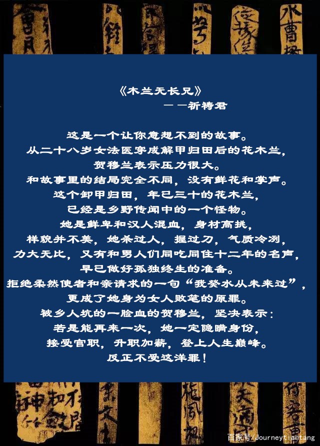推语:现代女法医贺穆兰,穿越成了自己一直很崇拜的英雄人物“花木兰”——解甲归田后被逼婚的大龄女将军。作者很擅长人物的心理描写,女主既不是很夸张的愚忠愚孝,又有小人物的悲喜和善良,全文背景立足北魏真实历史,很真实,能够看出对鲜卑和汉人这一历史时期的故事和风俗有过细致的调研,文笔很好,推荐一读。