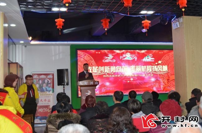 开封网讯 全媒体记者姚峰报道 1月23日,位于大梁路上的开封万户候国际旅行社举行开业庆典,我市近百位中老年游客见证了这一激动人心的时刻。开封万户候国旅主任白艳斐、著名豫剧表演艺术家柳兰芳、河南豫剧青年团团长孟祥礼和河南豫剧院党委书记、豫剧名家汪荃珍等艺术家参加了活动。