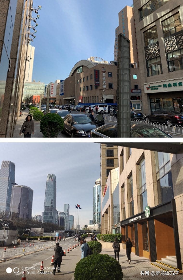 黑鲨2的画面解析力不如iPhone XS MAX,放大查看能发现明显的噪点。比如标识牌放大后出现了色块