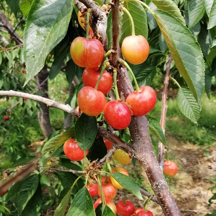 布鲁克斯樱桃苗的长势强,树冠扩大快。嫁接于吉塞拉矮化樱桃苗,3年就可以结果,5年就能丰产。而且吉塞拉矮化樱桃苗的特点是抗寒抗病虫害、丰产性强、土壤适应性、可以密植、采收也方便,并且经济价值也是非常高的。布鲁克斯的成熟期比较集中,比红灯晚熟3-7天左右,在山东地区5月中下旬,果实呈现出亮红色是就可以采收了。而布鲁克斯属于异花授粉,而且仅仅比红灯晚熟几天,可以选择红灯授粉树,若是不喜欢红灯的,还可以选择雷尼、美早、拉宾斯等等。