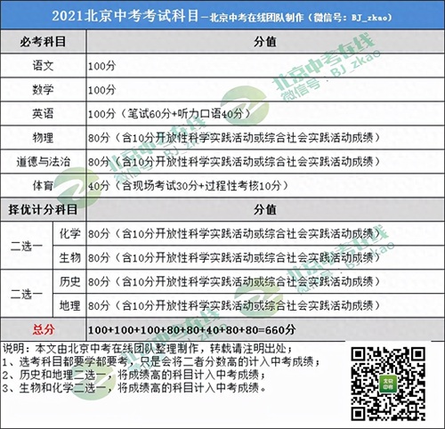 北京中考在线说:2021北京中考改革,总分变为660分,哪些科目成绩计入中考成绩呢?一起来看↓↓↓